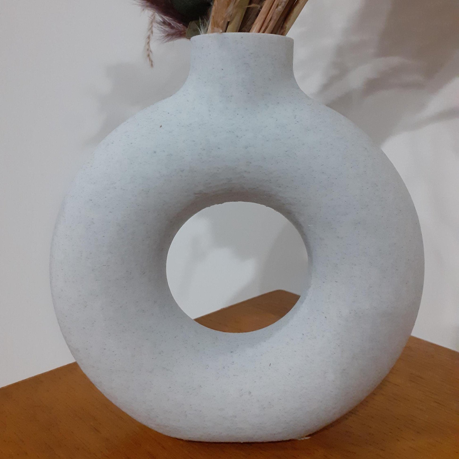 Apportez une touche d’élégance à votre intérieur avec ce vase rond donut au design sculptural, parfait pour des fleurs séchées ou fleurs fraîches car il est étanche. Son style minimaliste populaire et sa forme ajourée en font un véritable objet décoratif, même sans fleurs.